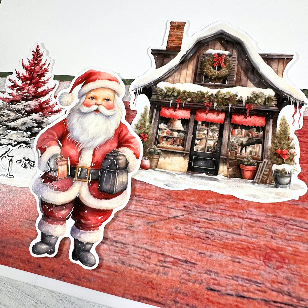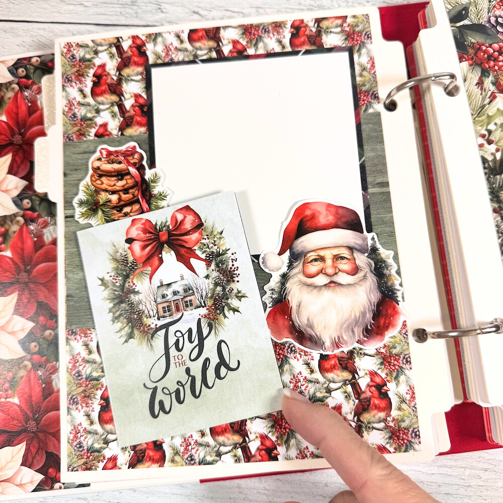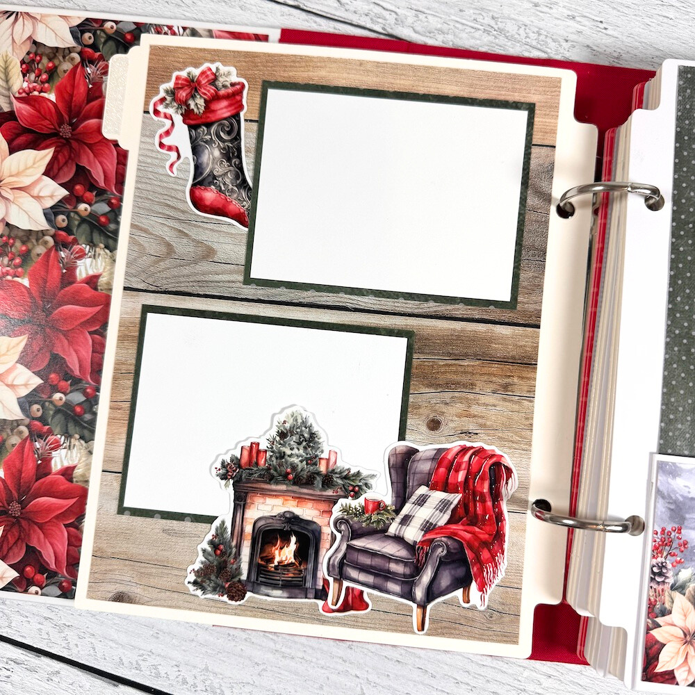 This fun DIY project is perfect for all your holiday photos. It has a classic, more traditional feel with rich colors and timeless images of Santa, poinsettias, stockings, nutcrackers, cardinal birds, wreaths, reindeer, holly, gifts, and so much more. It's beautiful!