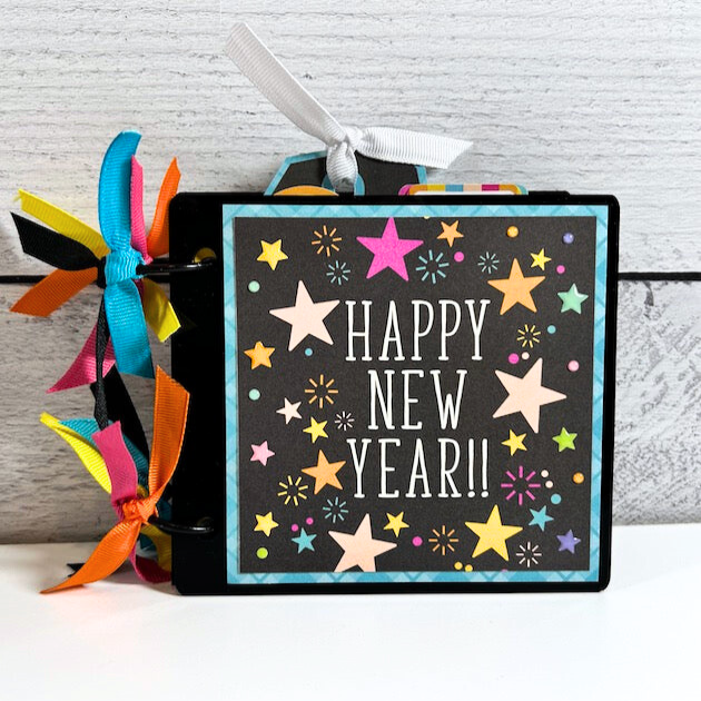 This fun DIY project is perfect for New Year's Eve / Day memories. Add pictures of a special dinner, a festive countdown party, fireworks, the iconic ball drop at Times Square, champagne toasts, family gatherings, party hats, noisemakers, decorations, brunch, a football party, and BBQs! This would also make a great hostess gift for a New Year's party.