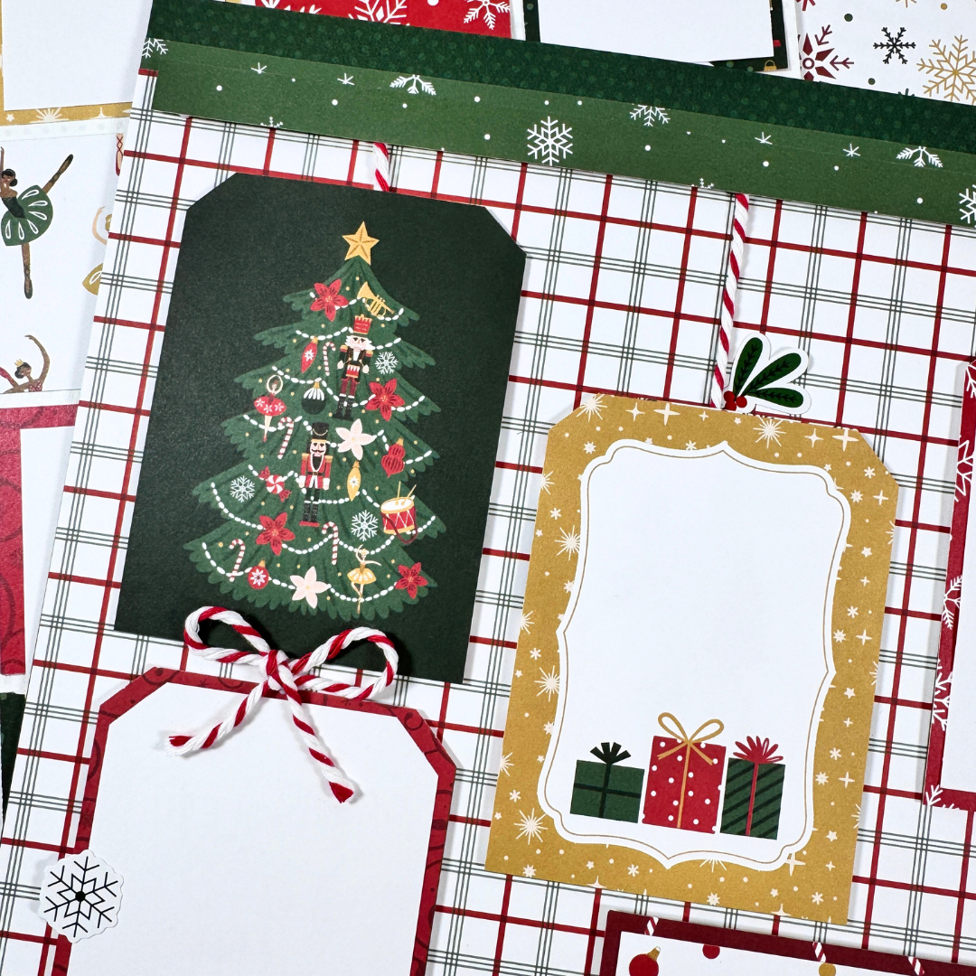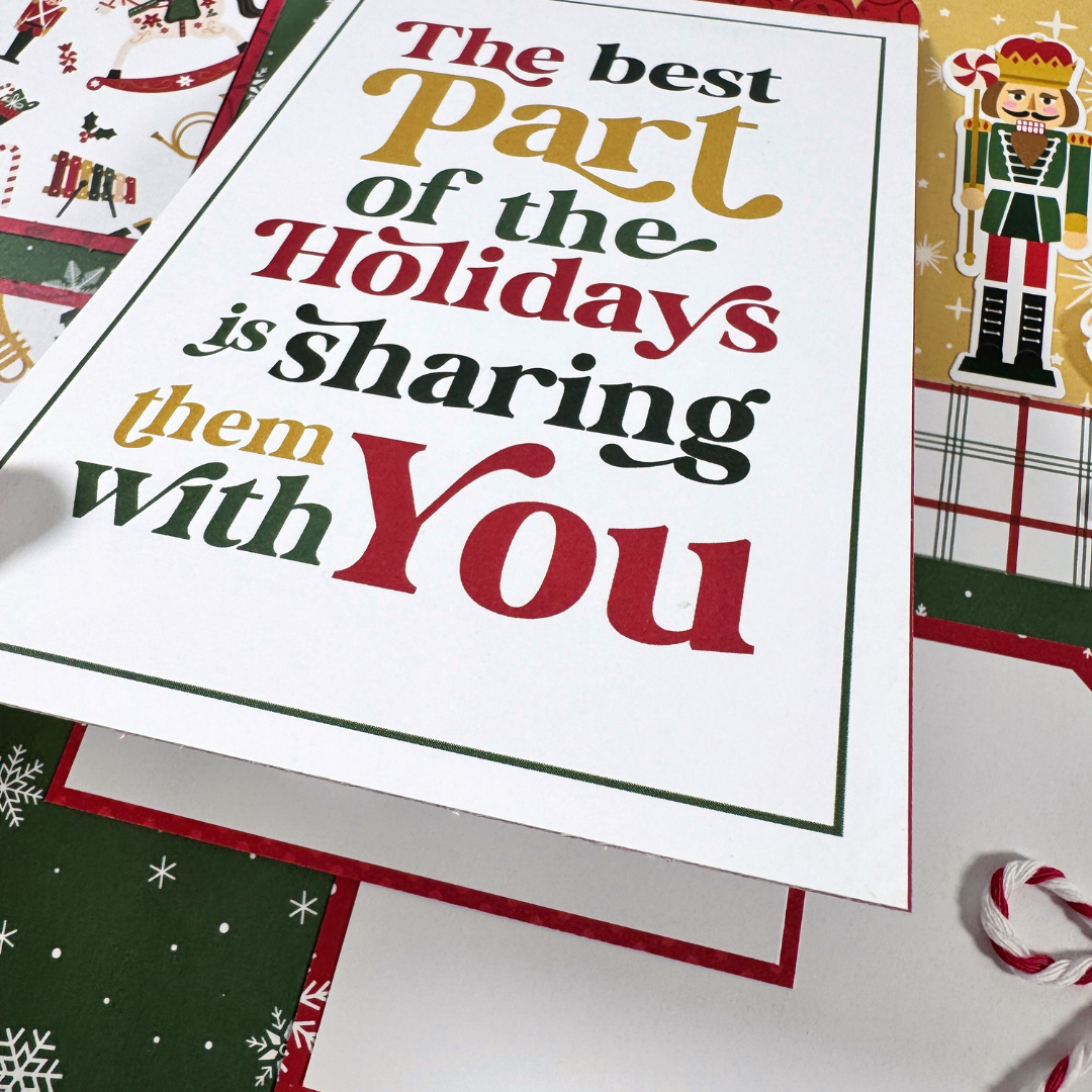 These SIX 12x12 inch Nutcracker Christmas Scrapbook Pages are handmade, preassembled, and ready for your photographs. Their archival quality makes them a perfect place to save your favorite holiday memories. (Available as a kit HERE.)