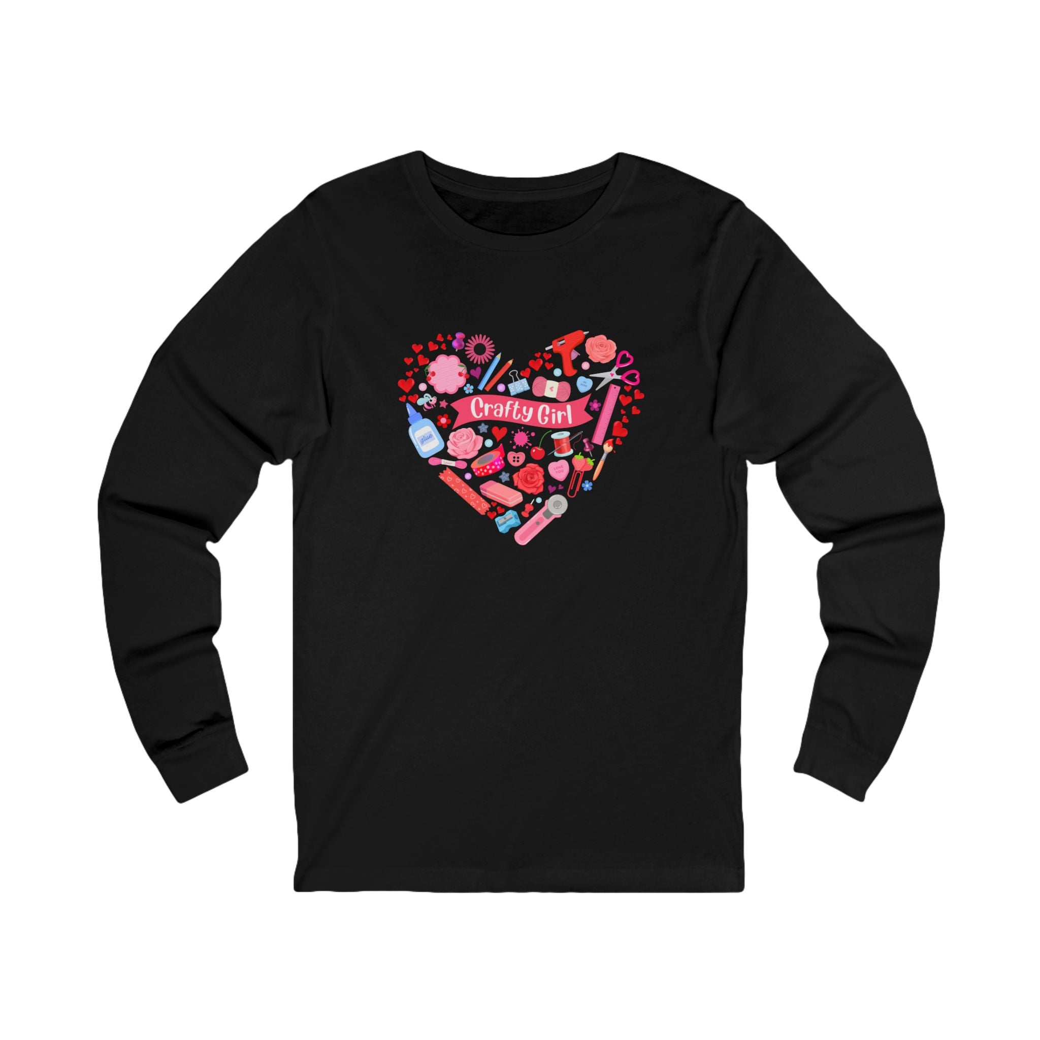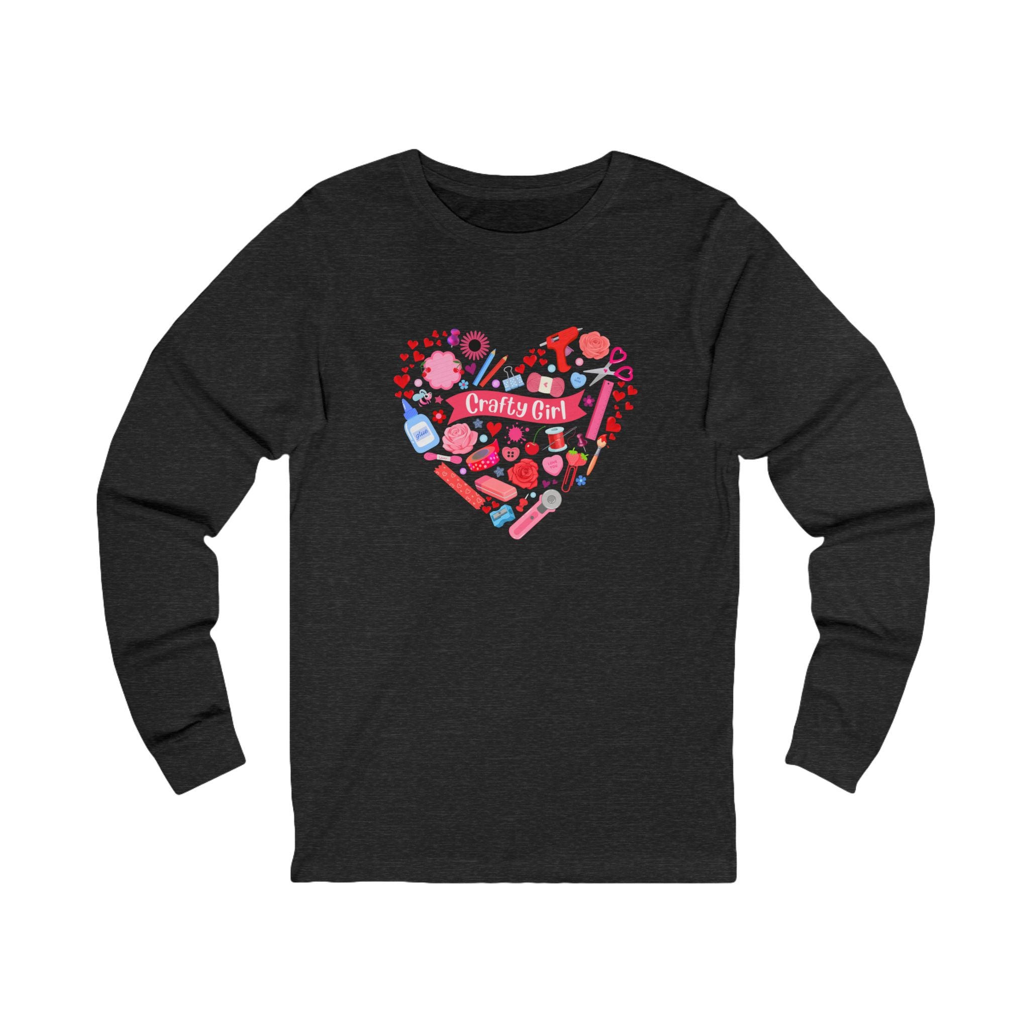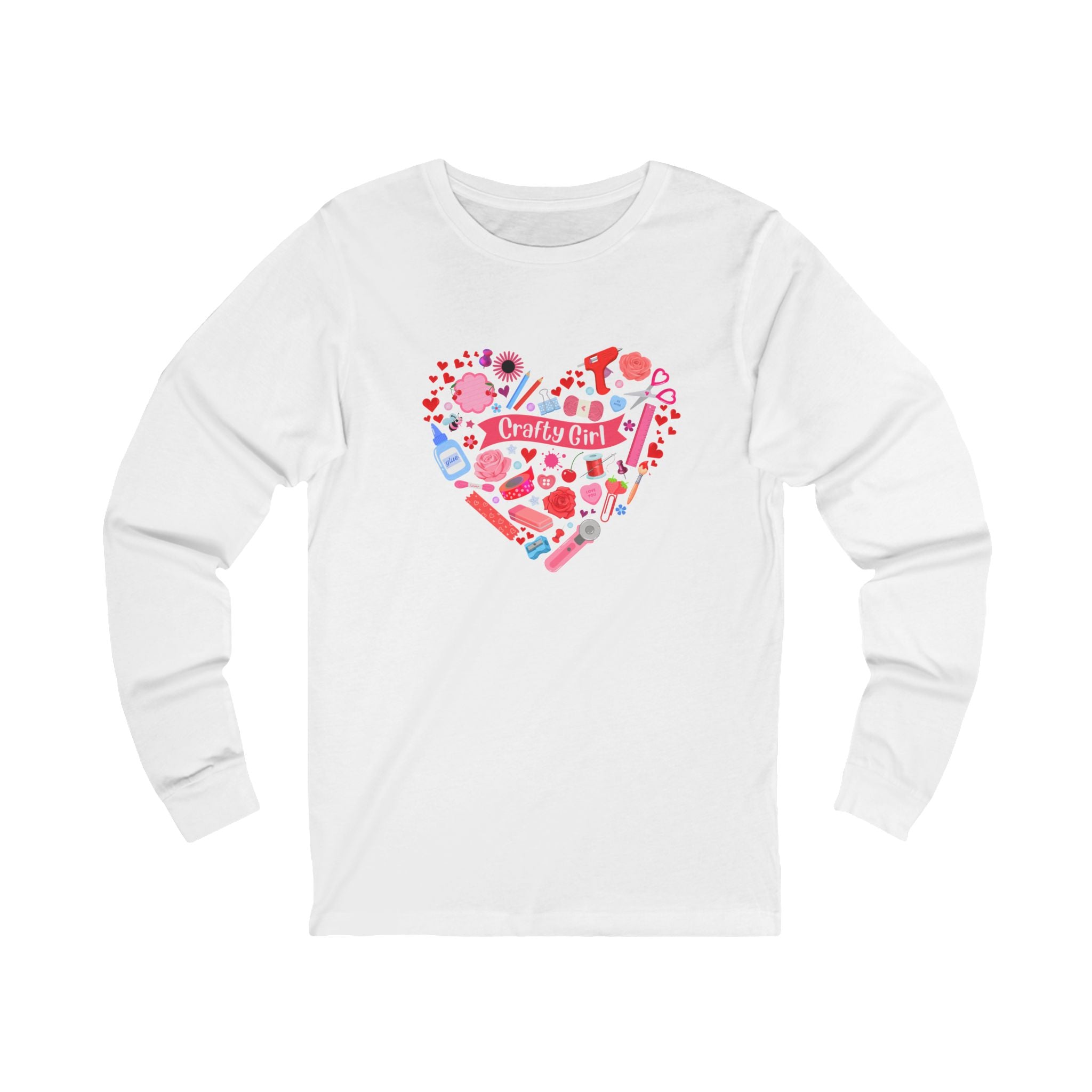 Our newest version of the Crafty Girl Heart Long Sleeve T-shirt is here! It's called Valentine's Day and it's a Limited Edition. It's filled with all types of cute crafting supplies, hearts, flowers, and more so ... it's perfect for ANY type of crafter. What a great way to show off your love for this fun hobby, and ... the season!