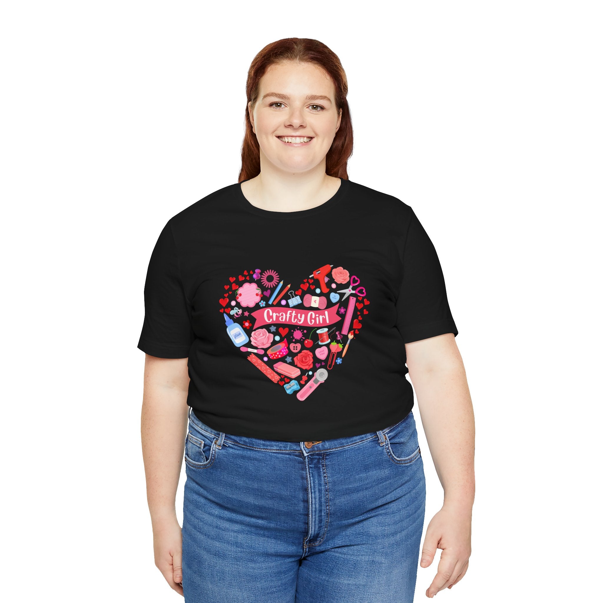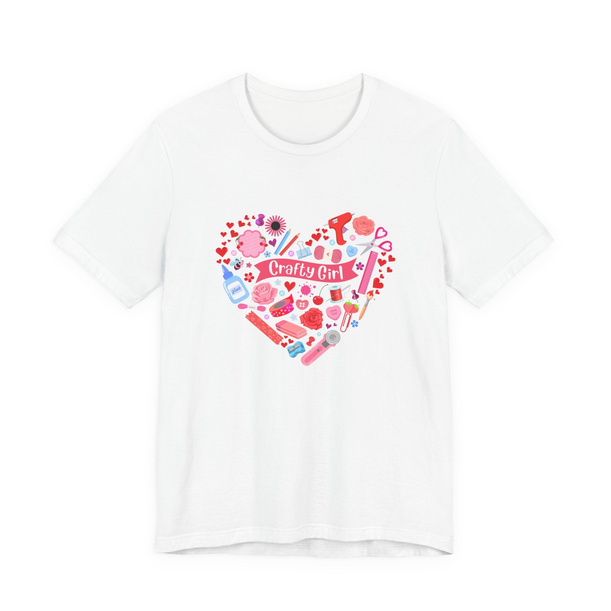 Our newest version of the Crafty Girl Heart T-shirt is here! It's called Valentine's Day and it's a Limited Edition. It's filled with all types of cute crafting supplies, hearts, flowers, and more so it's perfect for ANY type of crafter.  What a great way to show off your love for this fun hobby, and ... the season!